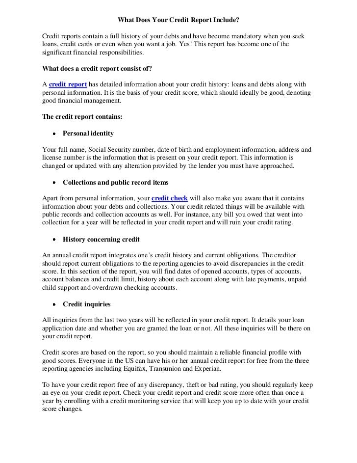 Credit Reports and Credit Scores Your credit history is important prospective employers, and more. So it’s especially important that you understand your credit report, credit score, and the companies that compile it’s a good idea to get your free credit report and review the ... Fetch Content