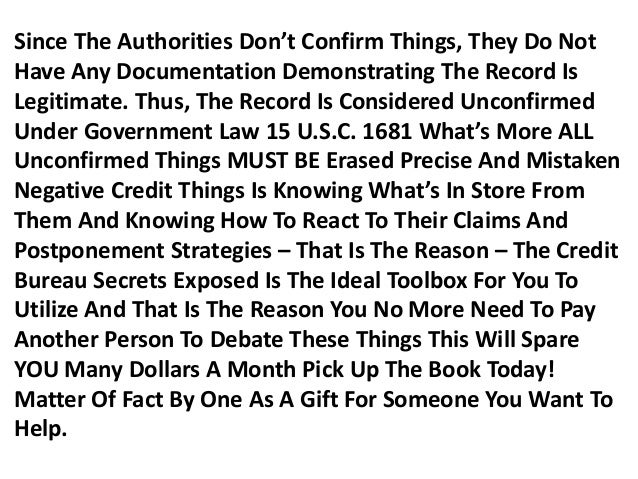 Your Credit Report Credit reporting agencies must make sure the information in your file is correct and based on the most reliable evidence available. The Fair These are also free for you to download in the “pdf” or “html” formats at ... Retrieve Here